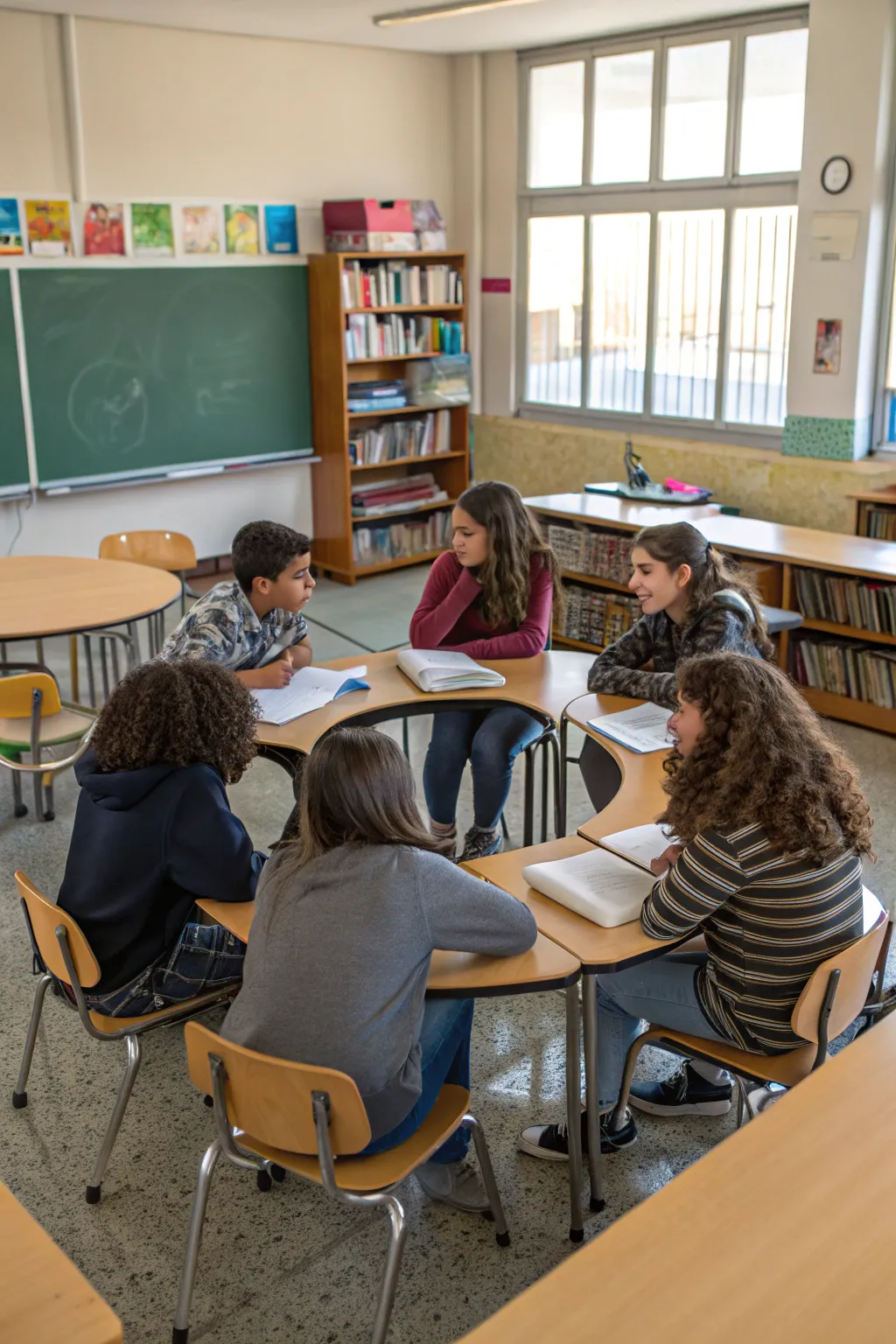 Putting desks in a circle makes a fair space for talks where everyone’s opinion matters. It’s like a family gathering, where everyone feels part of the group.