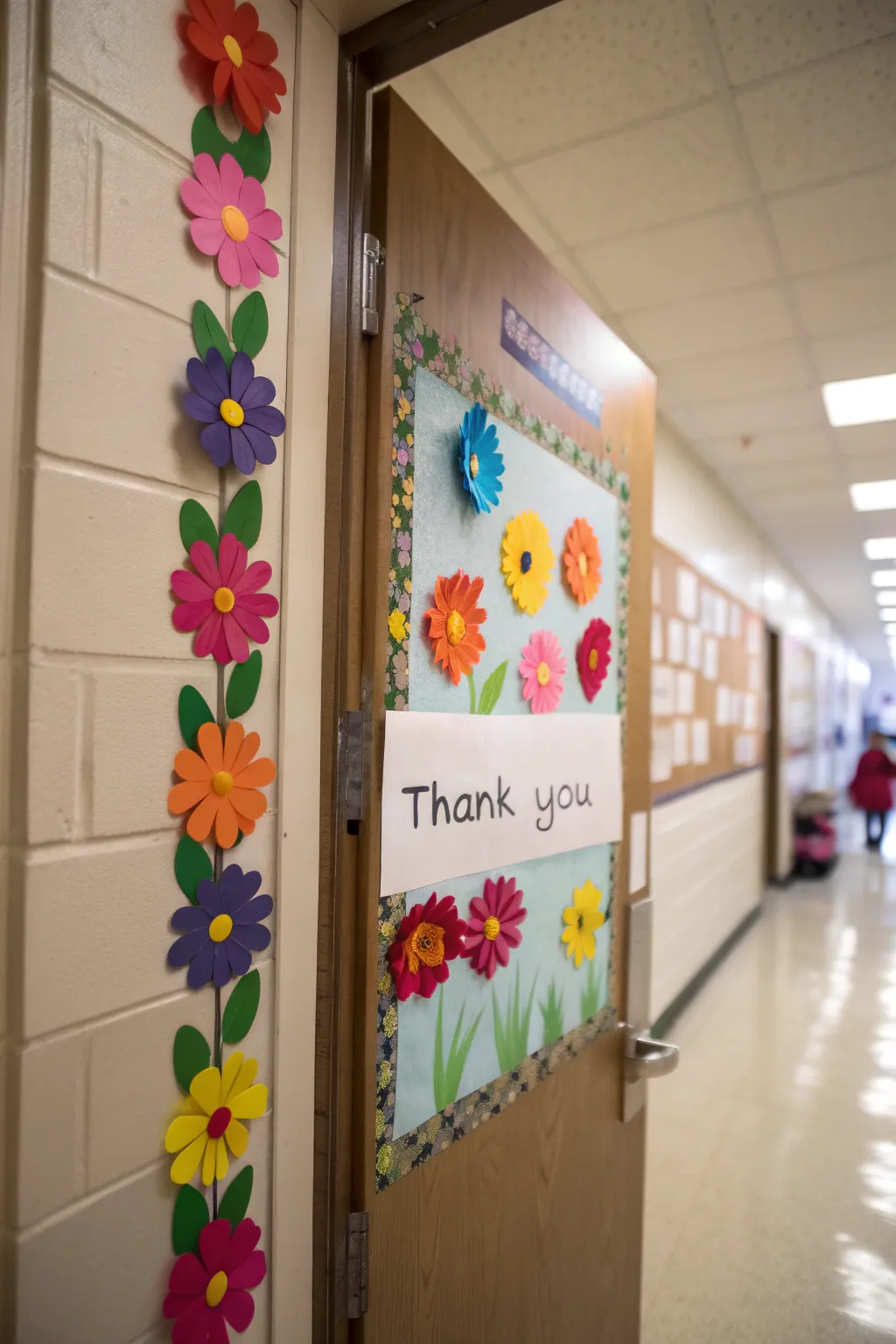 - Radiant Blossom Shapes: Elevate your classroom entrance with radiant blossom shapes, creating a lively display of appreciation.