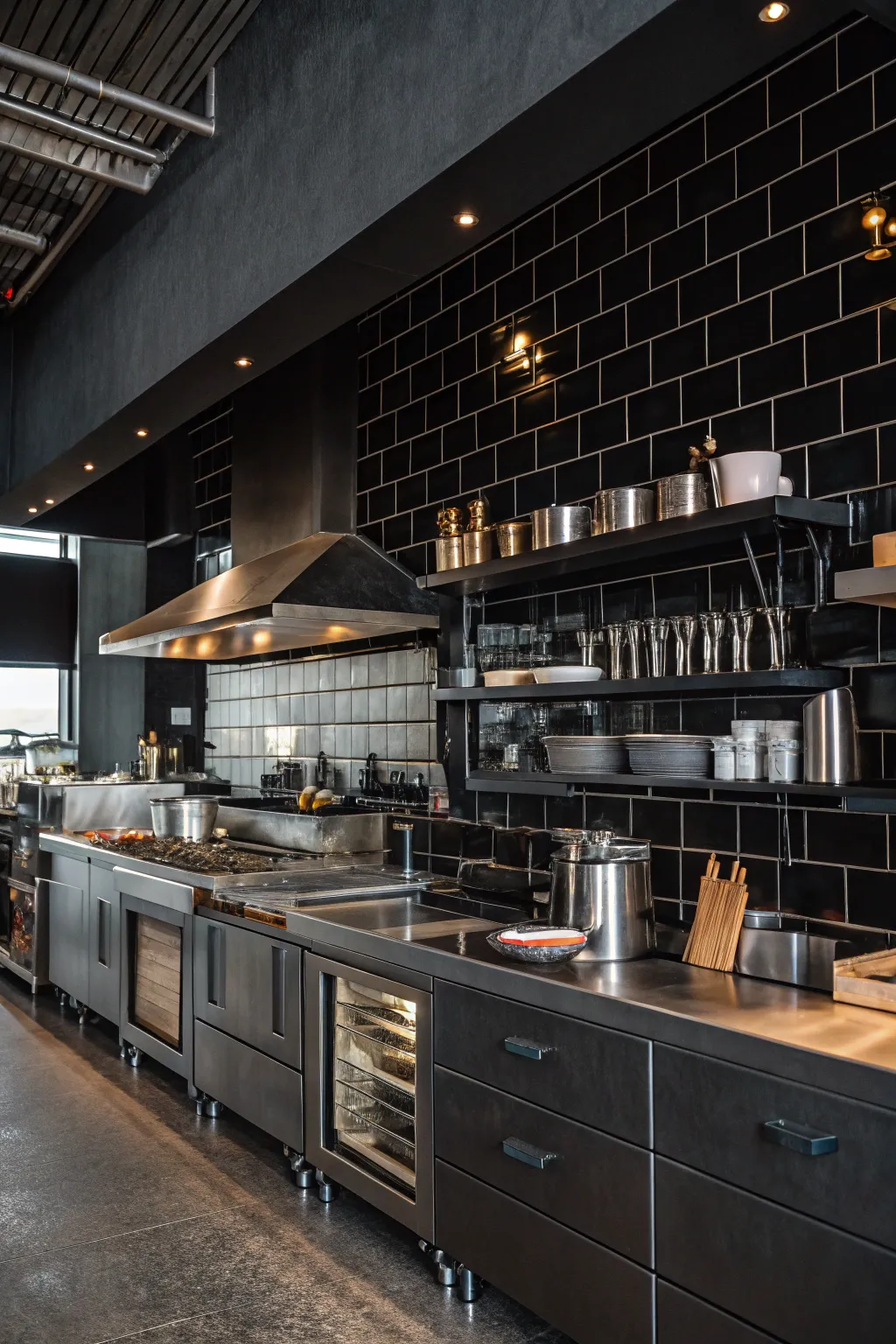 - Dark Angular Surface Tiles: Transform your kitchen using these classy dark angular tiles for a comforting and tactile ambiance today.