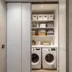 • Sleek Metal Tile Panels: Enhance your laundry area using sleek metal tiles for a modern, urban look seamlessly.