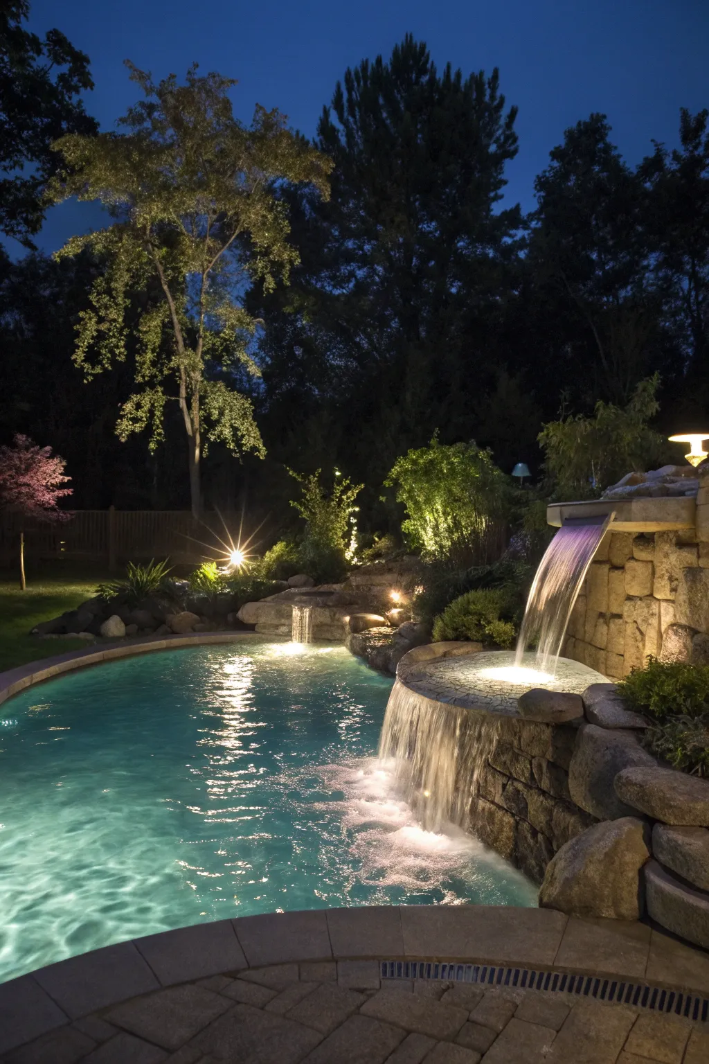 Incorporate illumination into your cascade for a captivating after-dark spectacle. I invariably suggest lamps to craft an inviting radiance that enhances both safety and mood once night descends.
