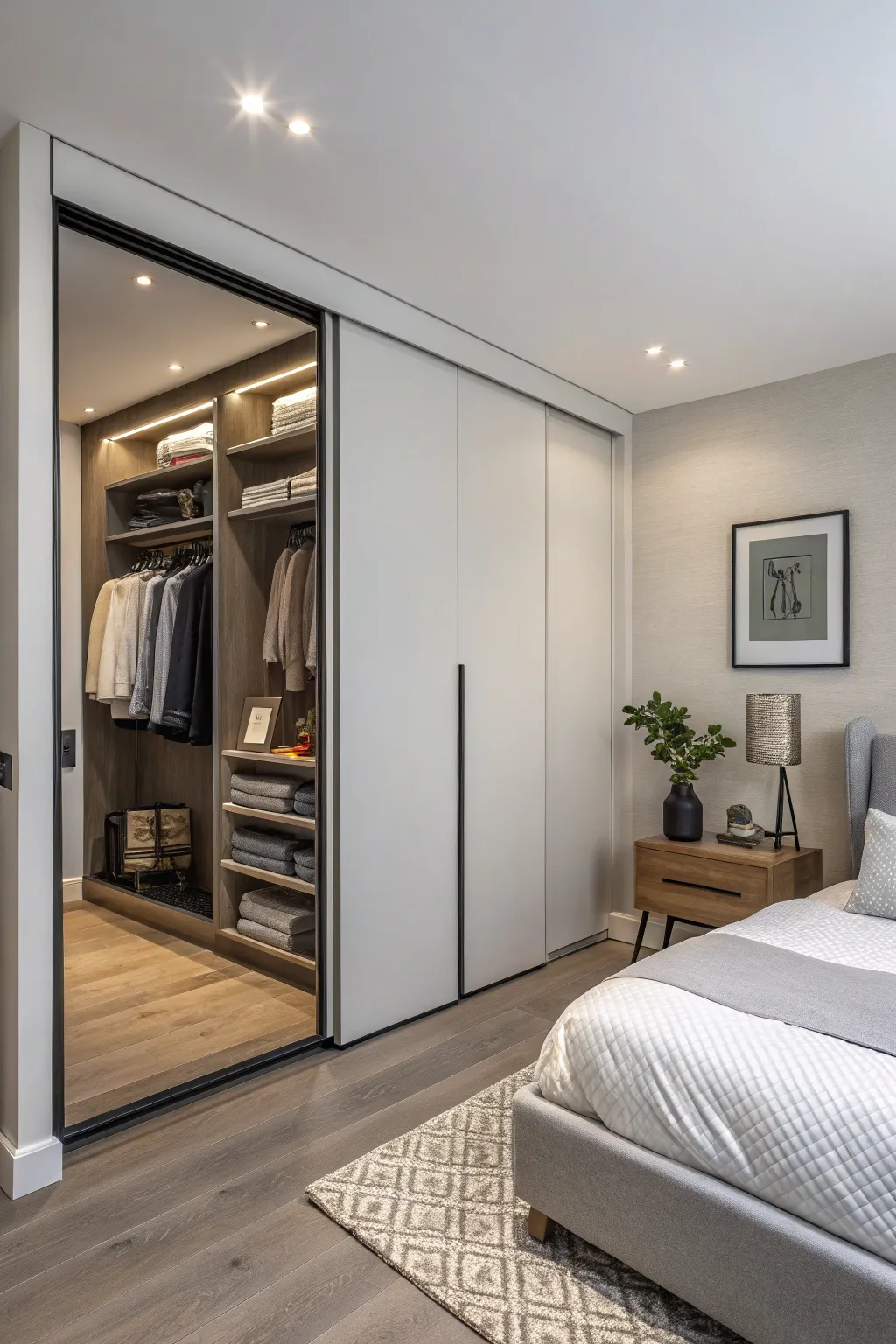 Gliding closets are revolutionary for conserving space and introducing a contemporary flair to your sanctuary. Thanks to their adaptable features, you can customize them to match your precise storage demands, be it more shelves or garment rods. I find that this customization really allows you to make the space your own.