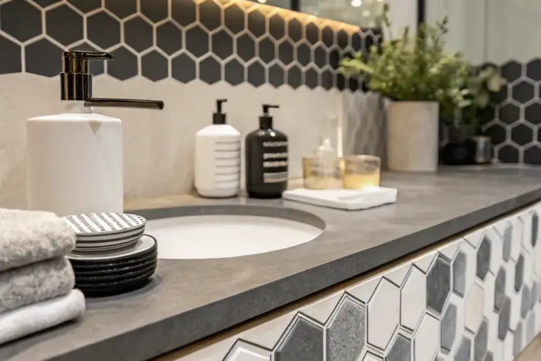 Greetings, design aficionados! Let’s explore the possibilities of tile bathroom countertops today, a remarkably adaptable and fashionable choice for your dwelling. Fluid Suspended Countertops Suspended countertops amplify expanse and luminosity. A suspended tile countertop can visually augment a bathroom’s dimensions. I’ve utilized this maneuver to maximize floor domain and uphold an ethereal sensation. Consider these options: Suspended Dresser Reinforcement Mounts: Elevate your bathroom expanse with robust mounts for a polished, suspended countertop aesthetic. Bathroom Basin…