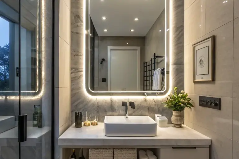 We all dream of a bathroom that feels like our own private spa. By incorporating the right light-emitting diode reflective surface, you have the power to revolutionize your lavatory into a peaceful getaway. Marble Enchantment A timeless lavatory design with a marble backdrop and a streamlined light-emitting diode reflective surface. Position a light-emitting diode reflective surface against a marble backdrop for a timeless aesthetic. The contrast between the streamlined reflective surface and the textured stone…