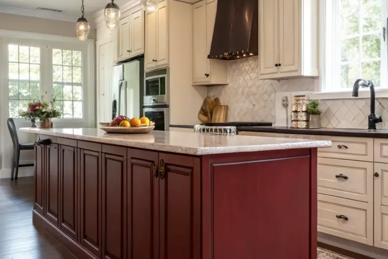 Envision your kitchen transformed into a dramatic and welcoming heart of your home with deep crimson cabinets. Whether your taste leans towards sleek modernity or a more lived-in, country style, there’s definitely a dark red cabinet concept to perfectly suit your desires. Experiment with a Single-Color Palette Bold monochromatic kitchen in dark red. Go all-in with a single-shade crimson kitchen for a daring declaration. I’ve noticed that this method, while adventurous, forges a seamless and…