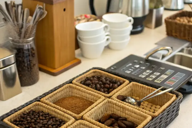 Designing a coffee corner on your countertop transforms a regular spot into a cozy, personal café. It perfectly blends form and function, elevating each coffee moment into something truly special. A Splash of Color A splash of color brings energy to your coffee station. Add a splash of color with vibrant mugs and decor, which is a simple way to energize your coffee area and add personality. Possibly handy products: Set of Vivid Ceramic Mugs:…