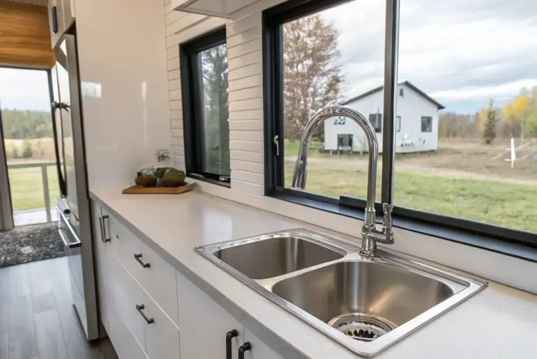 When you’re dealing with a compact footprint in a tiny home, each design element is key, especially in the heart of your home—the kitchen. Sinks can serve as focal points that are not only visually appealing but also greatly functional, transforming even the smallest kitchens into zones that are both practical and chic. Corner Sink Mastery A modern tiny house kitchen enhancing the corner space with a stylish sink. A corner sink can change an…