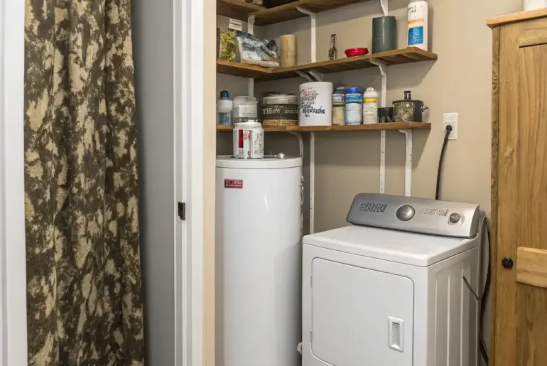 Let’s face it: laundry rooms can be tricky when you’re aiming for beauty and the water heater is just…there. Don’t worry! I’ve compiled seventeen inventive ideas to help you mask that less-than-lovely appliance and completely transform your space! Multi-Use Shelving Solutions Shelving can conceal the water heater while adding storage space. Incorporate your water heater into a shelving structure for a design that serves two purposes. I’ve utilized this strategy to increase storage while camouflaging…