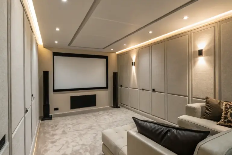 Designing a home cinema in a compact setting is akin to a calculated game; each choice matters. With a few inventive strategies, you’re able to transform a small space into a delightful cinematic escape. Try Bold Wall Colors Bold colors can completely transform your theater’s vibe. Dark, bold wall colors make the screen pop and make an intimate atmosphere. It’s a daring choice that pays off in style. Some ideas to consider: Rich Burgundy Wall…