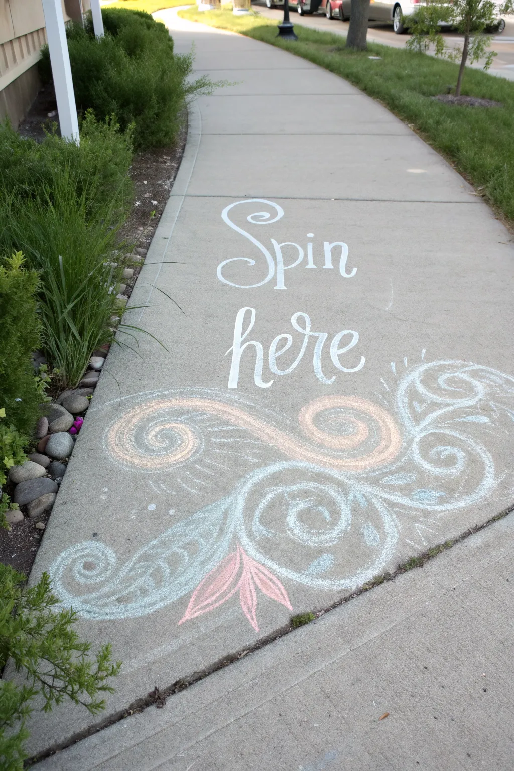 Add a playful twist to your playtime with this delightful ‘Spin Here’ chalk design, suitable for little twirlers and lovers of minimalist beauty.