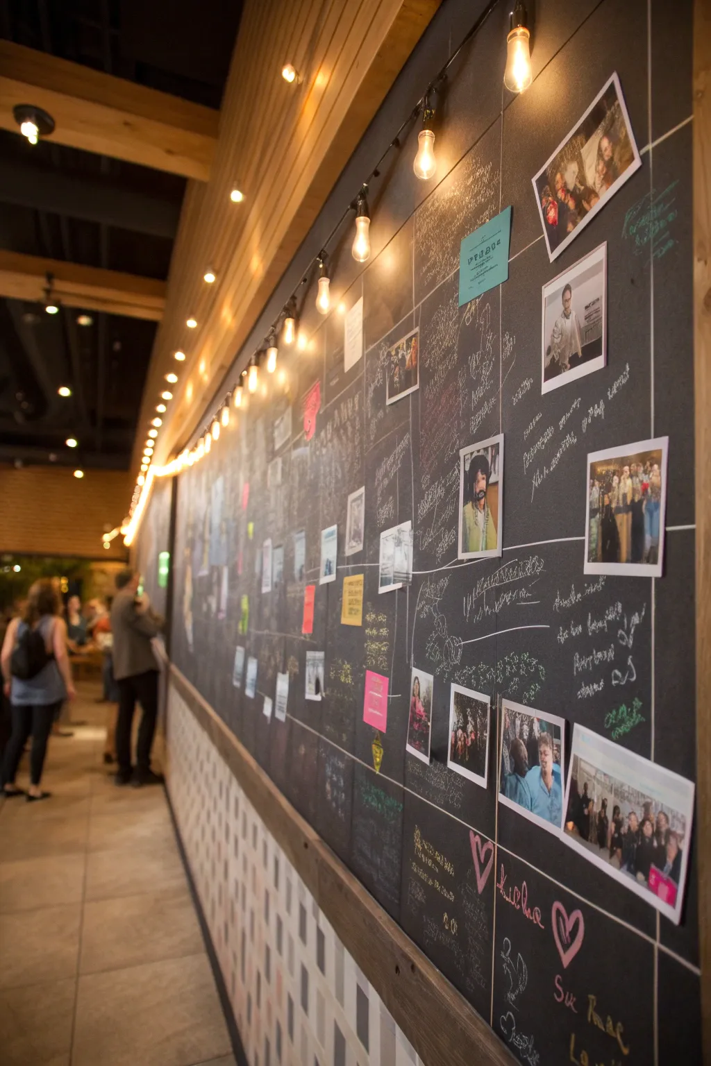 Encourage guests to write notes or best wishes on a communal slate board. It creates a meaningful memento for the bride-to-be.