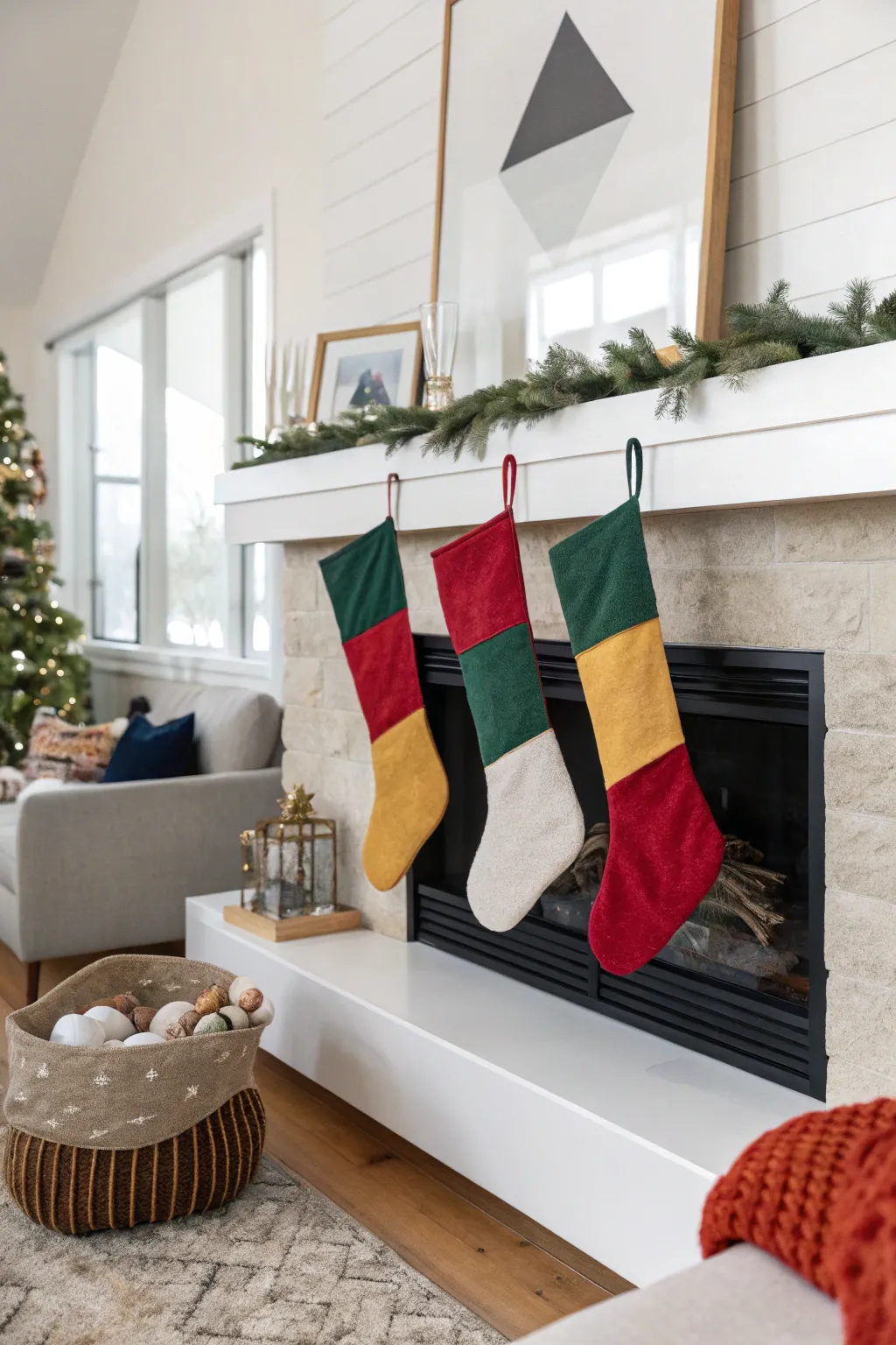 Accept surfaces drawn from nature, such as woven or knitted materials, to provide your stockings with an earthy sensation. I often suggest this for those looking to create a calm and natural holiday ambiance. It gives a sense of peace and grounding.