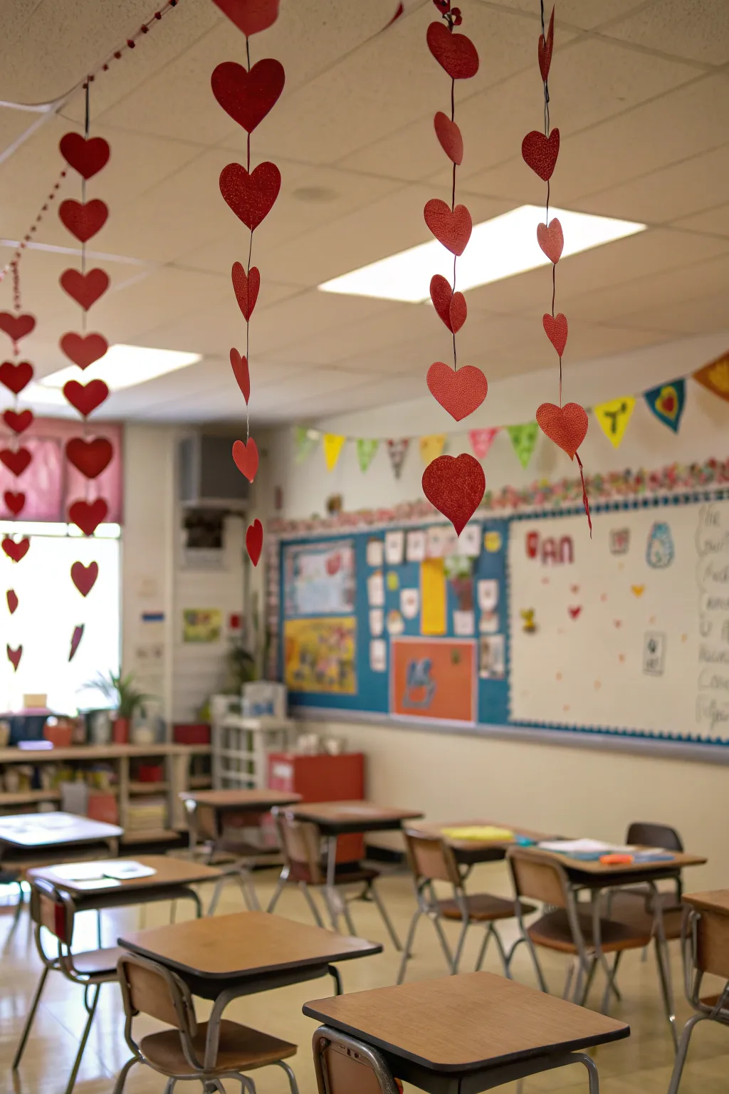 Hang heart decorations from above to conjure an enchanting ambiance. It adds a quirky touch that pupils simply love.
