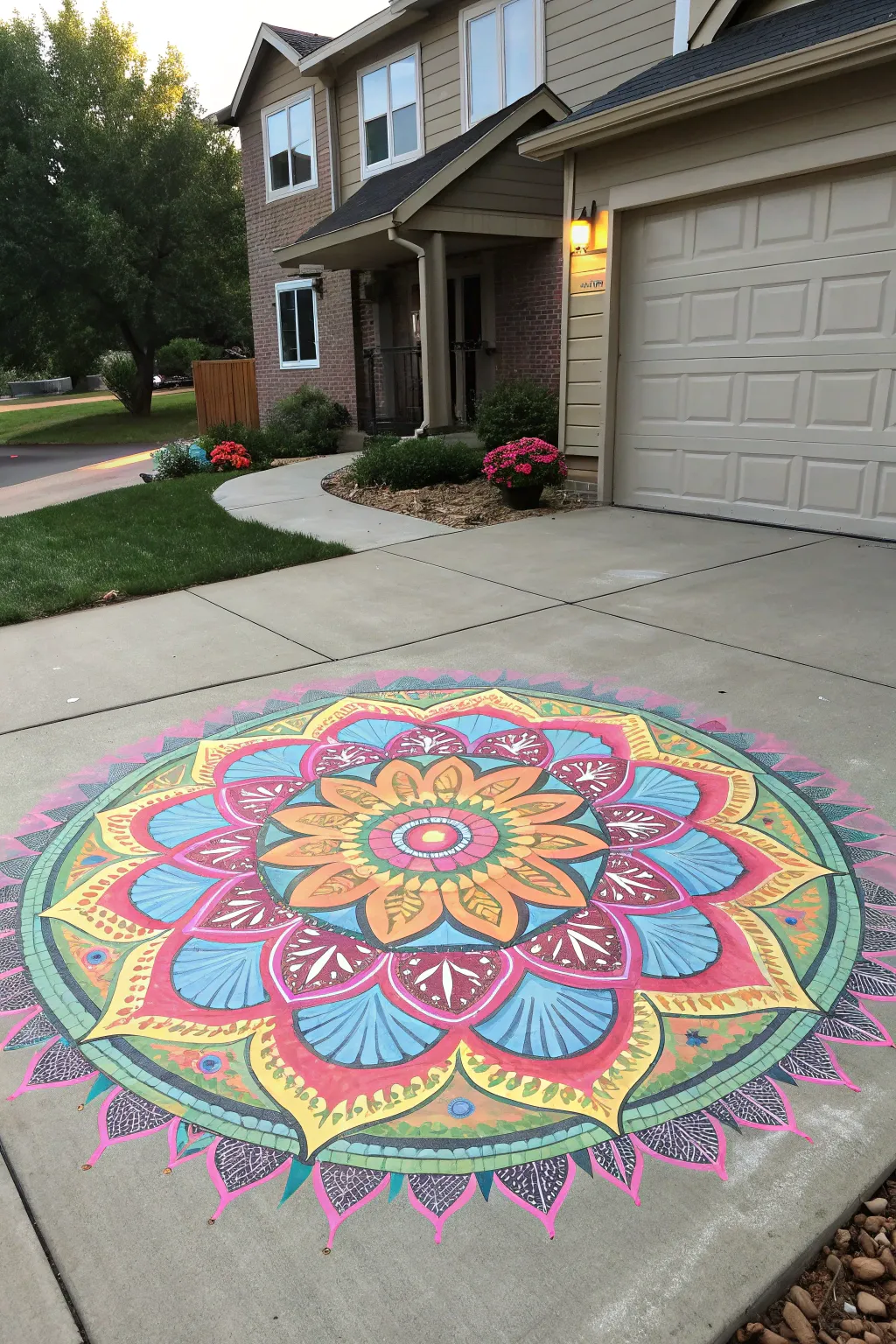 Transform your driveway into a canvas with artistic designs like mandalas or murals. I’ve been amazed by how creative applications can turn driveways into incredibly unique and inviting spaces