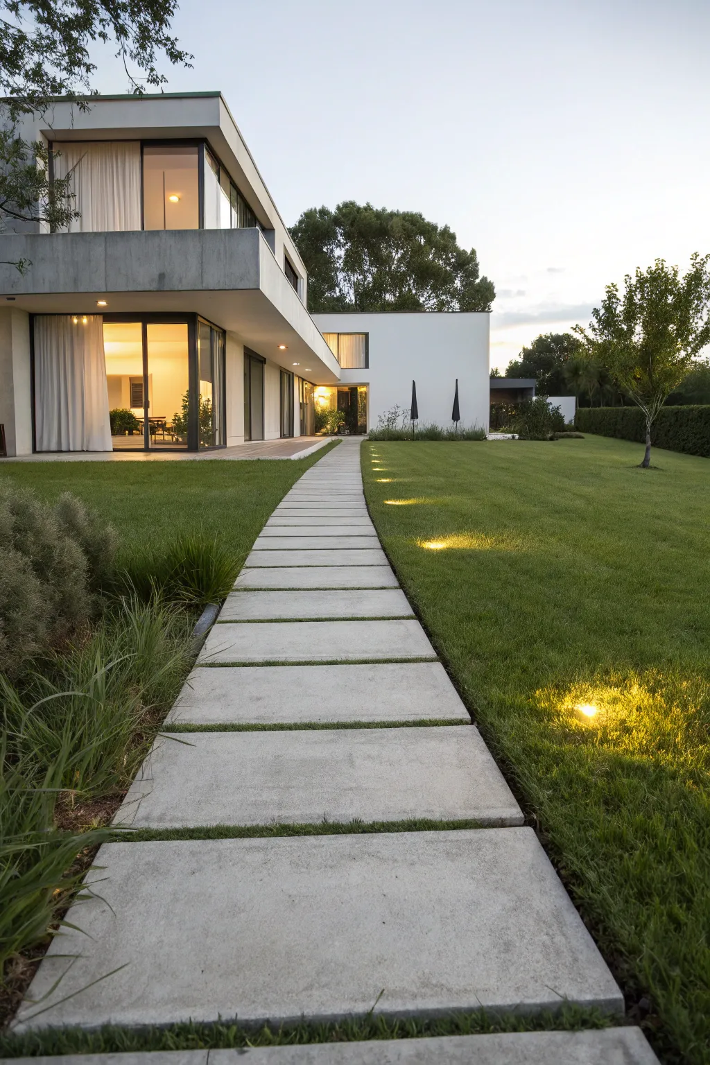 Incorporating greenery among concrete pieces can temper the visual impact of your walkway, introducing a natural feel. I often advocate this approach to forge a smooth transition between the constructed and organic elements.