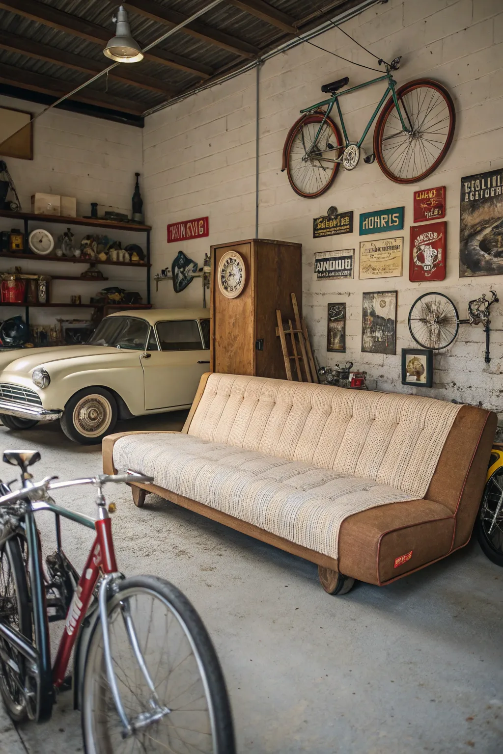 Channel a retro vibe using a convertable that folds out into a bed, ideally suited for a vintage garage aesthetic. I’m fond of how this option unites functionality with a tribute to the past.