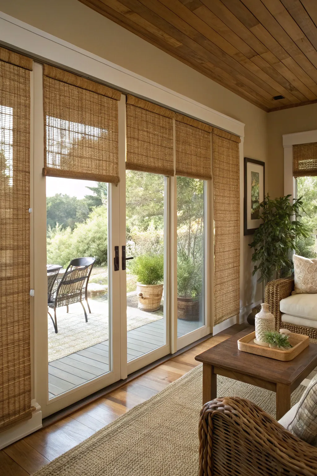 - Bamboo Lift-Up Shades: Add warmth and aesthetic with these eco-aware bamboo lift-up shades on your sliding doors.