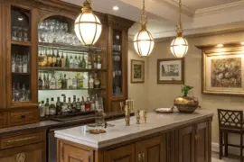 Incorporate a stylish wine rack to turn the corner into a mini bar area. This creates a sophisticated touch and ensures your favorite vintage is always at the ready.
