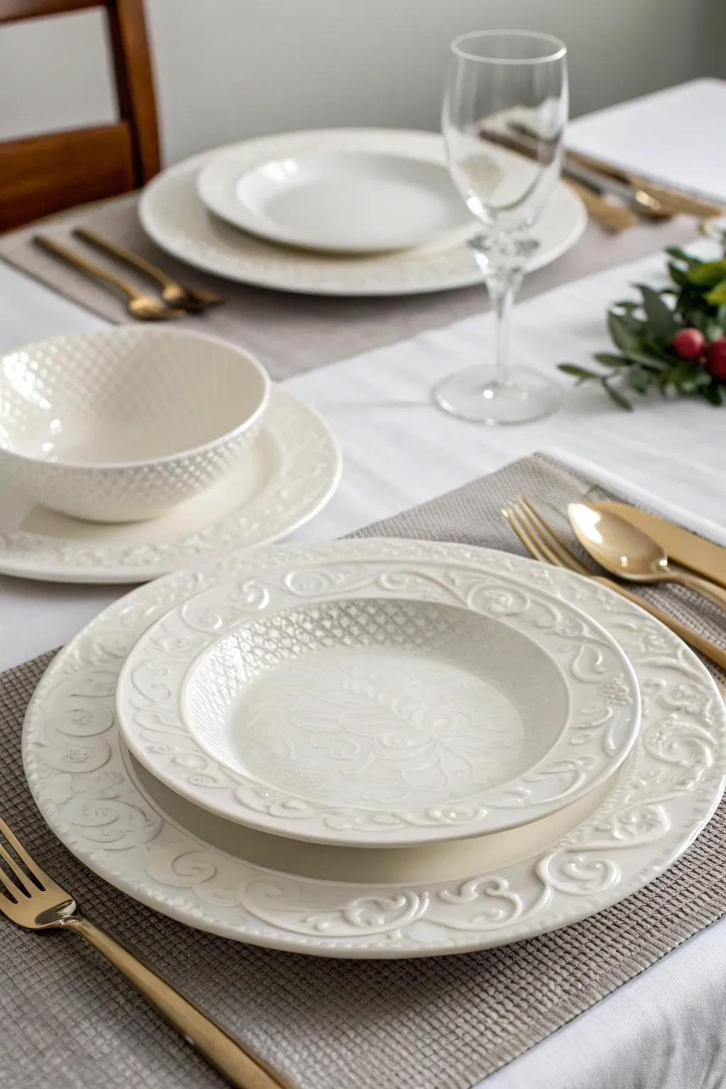 Select white dinnerware featuring subtle patterns or a streamlined minimalist aesthetic to ensure the cuisine takes center stage. This is my constant choice for any elegant gathering.