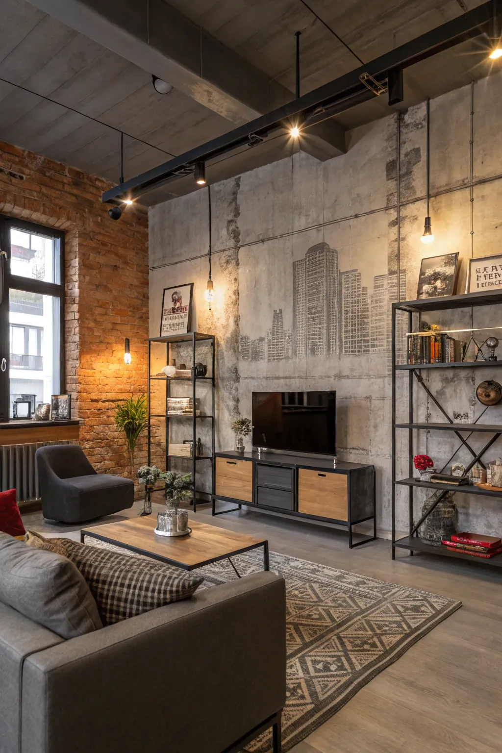 Enjoy the industrial trend with a concrete-look mural. I added this chic touch to my modern living room, and it’s a hit.