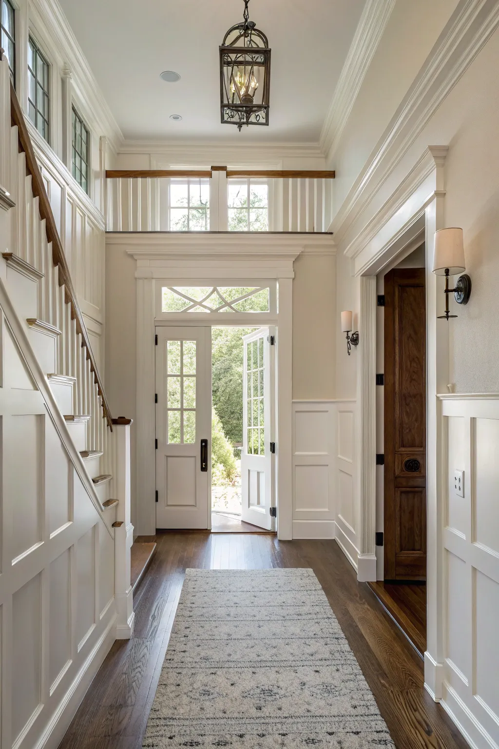 Traditional paneling brings a classic refinement to any entryway. I find that this design builds a harmonious and welcoming environment, fitting perfectly with both contemporary and classic designs.