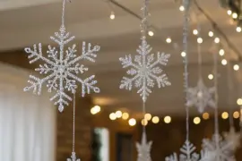 Add a touch of festivity with hanging decorations such as lanterns or cascading elements. They draw the eye upward and fill the space with whimsy.