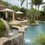 Establish a striking contrast with deep sea panels. This was a bold choice in a recent seaside project, and it accentuated the granite’s patterns beautifully, creating a captivating focal point and a sense of depth.