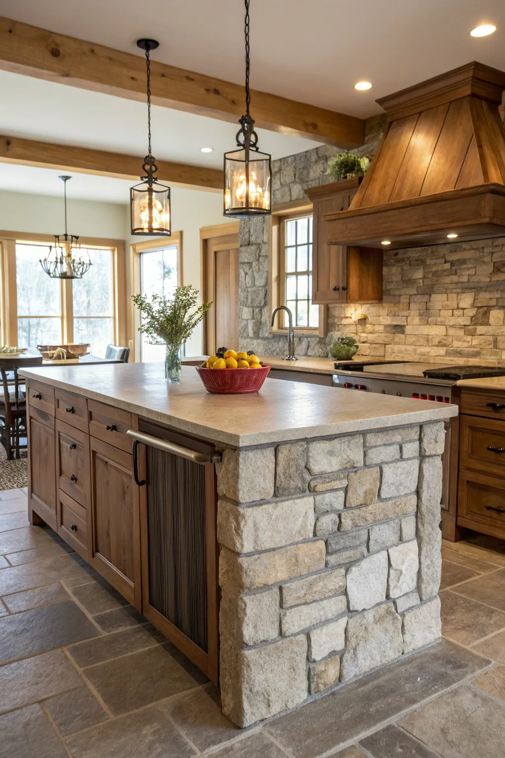 Introducing rough textures like worn wood or stone can elevate the country allure of your cooking space hub. It’s a delightful tactic to inject dimension and curiosity into your cooking space’s centerpiece.