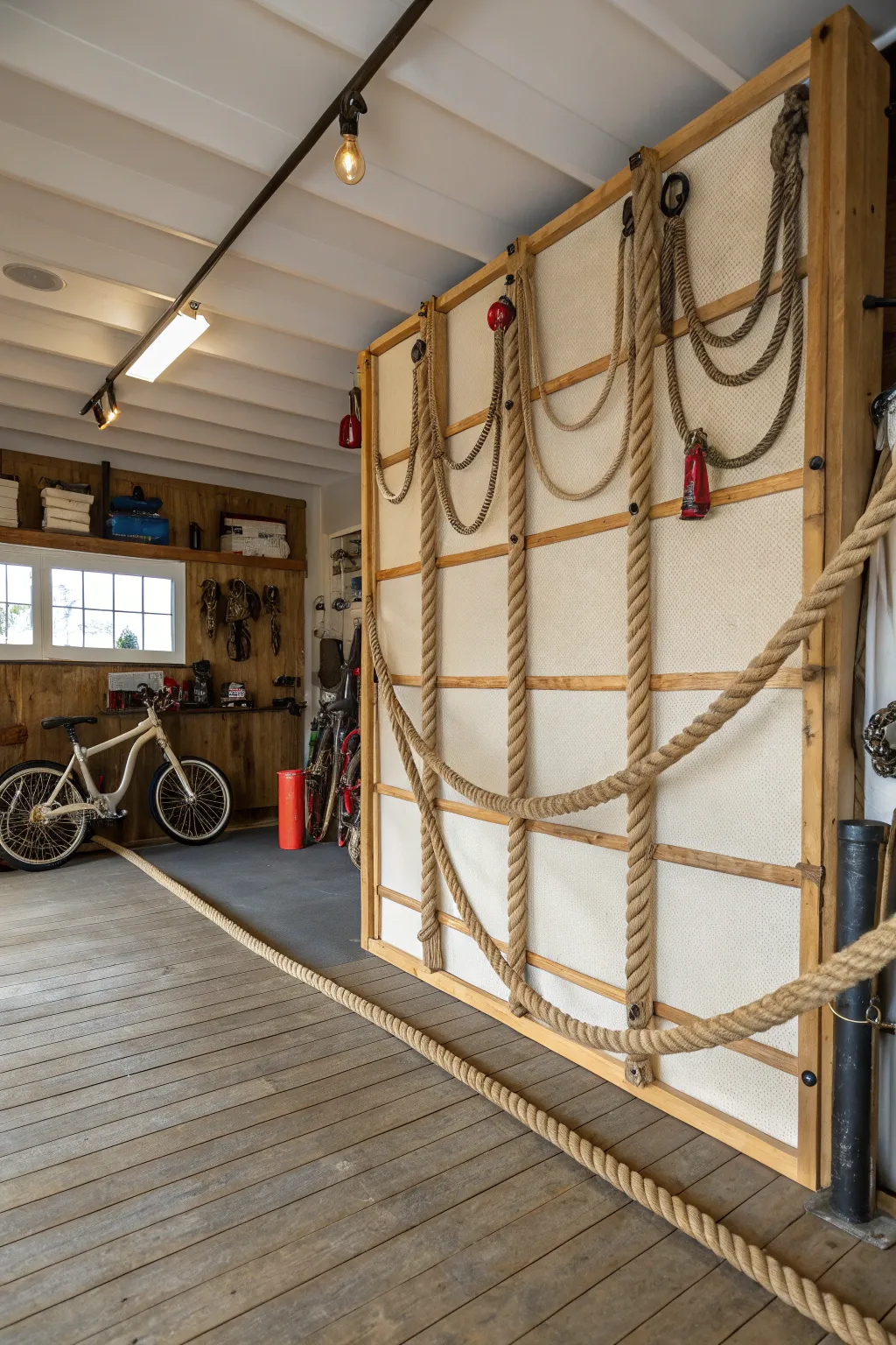 Incorporate a hint of countryside charm into your garage through handcrafted skid walls. They represent a thrifty alternative, empowering space customization while repurposing aged skids.
