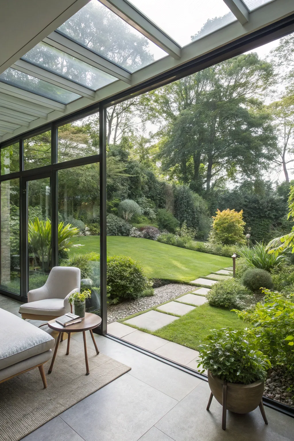 Choose a modern outdoor room with transparent panels and clean designs for a contemporary vibe. From what I’ve seen, these spaces feel like an effortless continuation of your interior.