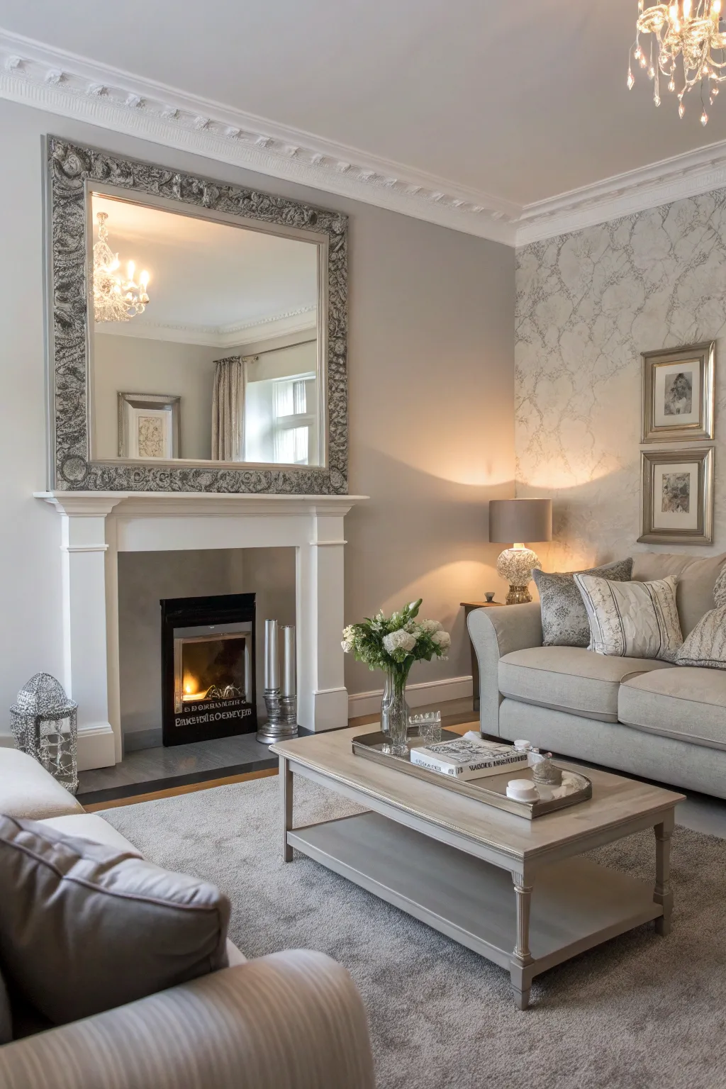 - Grey Mantel Reflector: Upgrade your mantel with a modern grey reflector, ideal for making an illusion of more space.