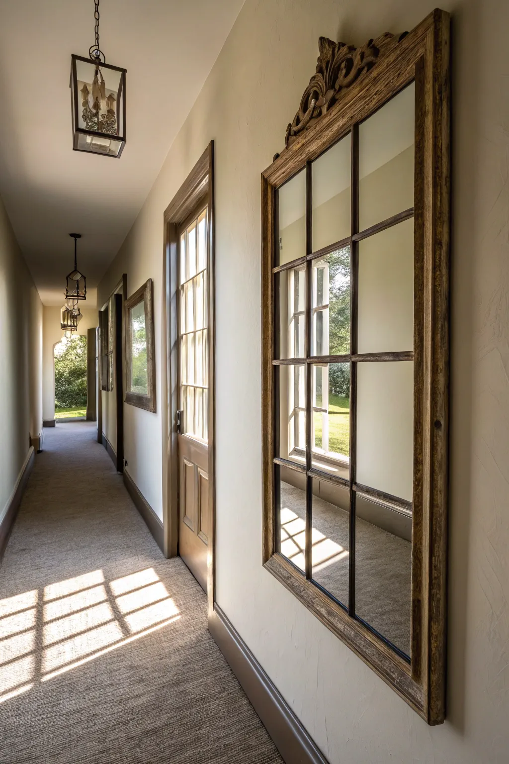 - Country-Style Windowpane Mirror: Transform your hallway with this charming mirror, crafting the illusion of additional windows.