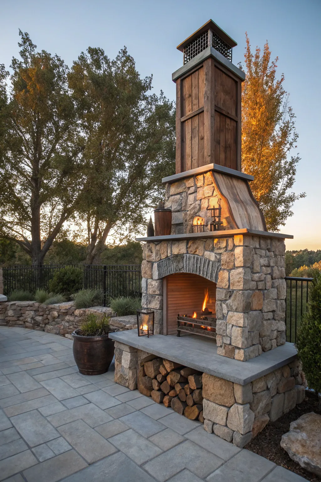 Relish a double-aspect hearth as a distinctive addition to your backyard.