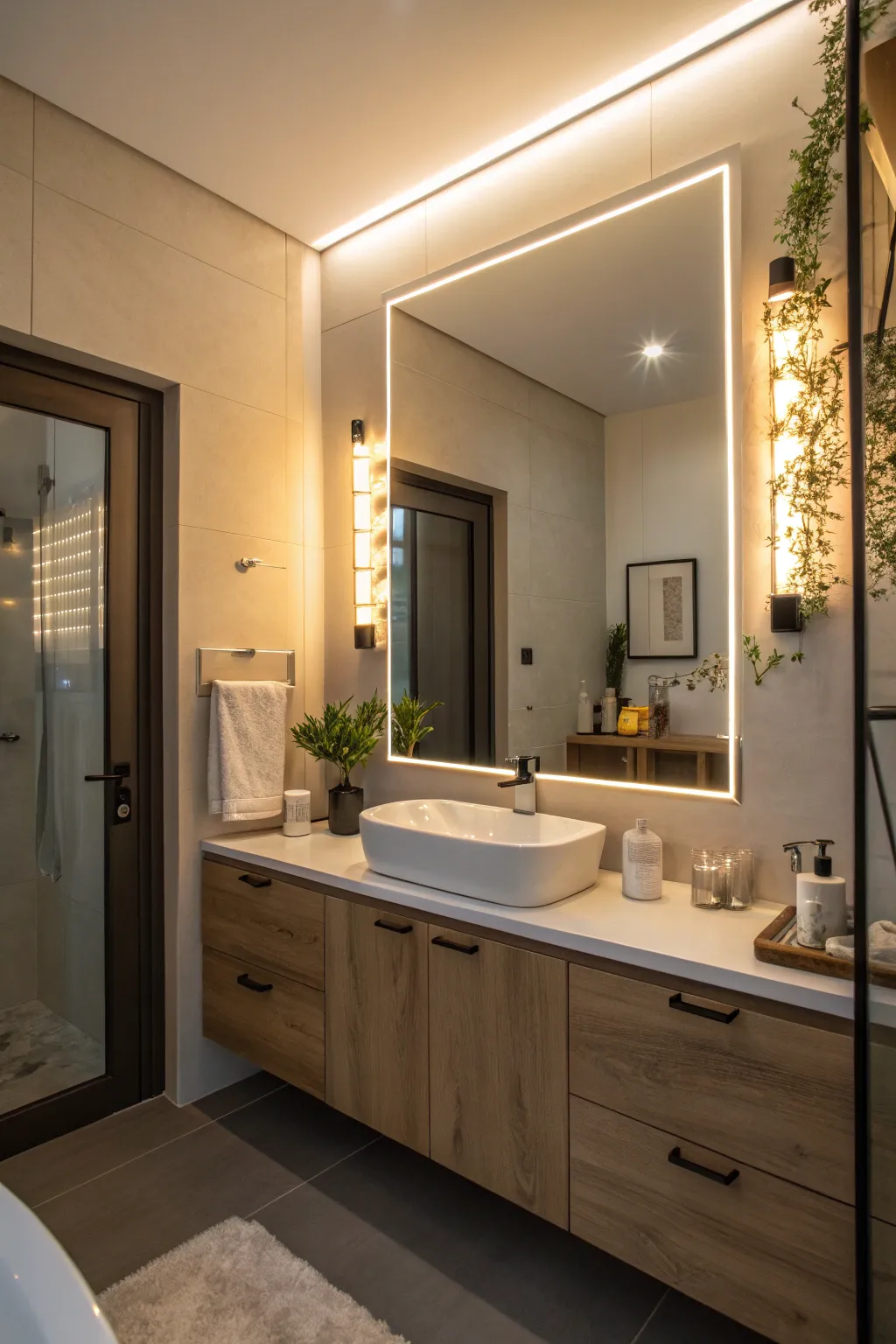 • LED Strip Lights: Enhance your bathroom ambiance using adaptable LED strips for elegant ground-level lighting.