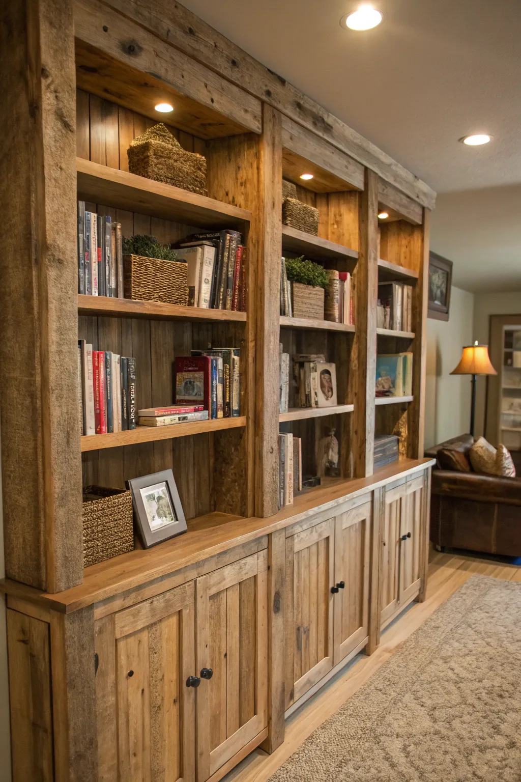 Incorporate repurposed timber for a rustic bookshelf look. The natural material introduces warmth and character to your area.