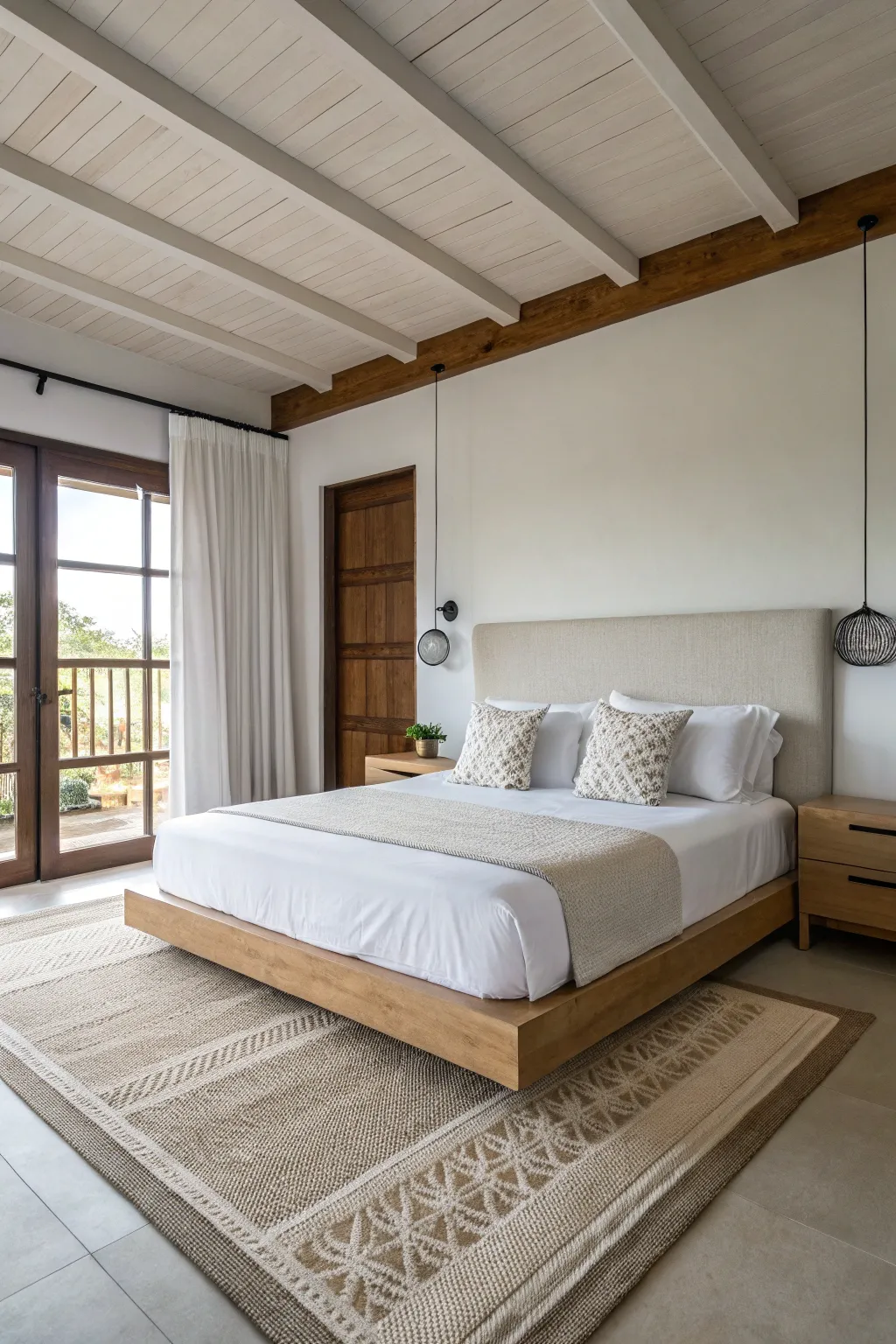 • Detailed Wooden Headboard: Incorporate organic charm using a detailed wooden headboard, establishing an artistic and homespun centerpiece.