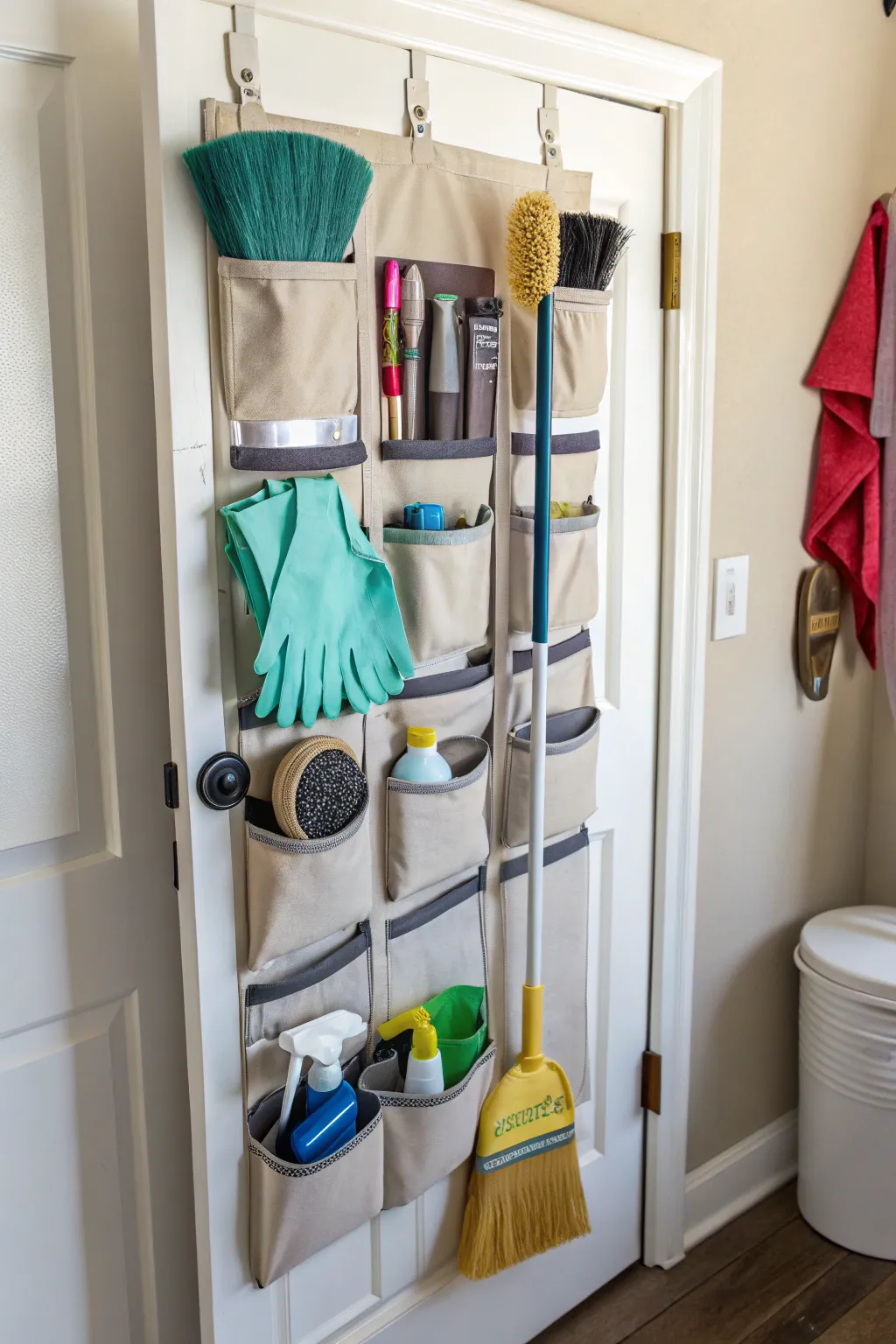 Use vertical storage to keep your cleaning tools in order and easy to reach.