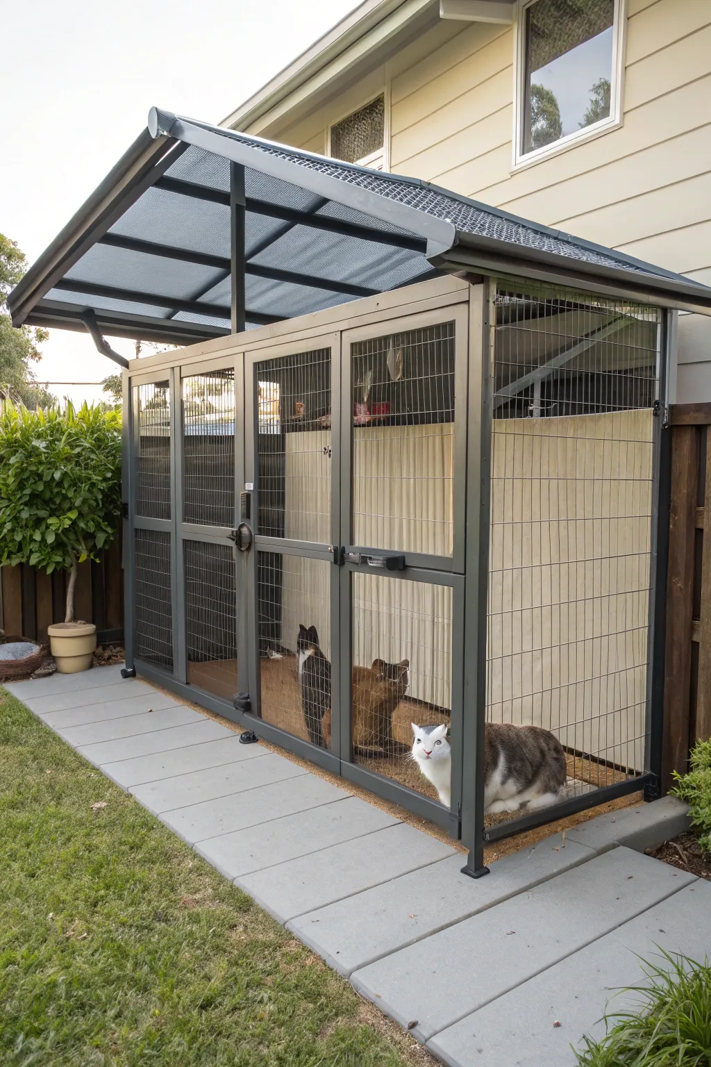 Ensure your catio includes weather-protected shelters for year-round use. I prioritize these in all my designs, ensuring that cats remain comfortable regardless of the weather.