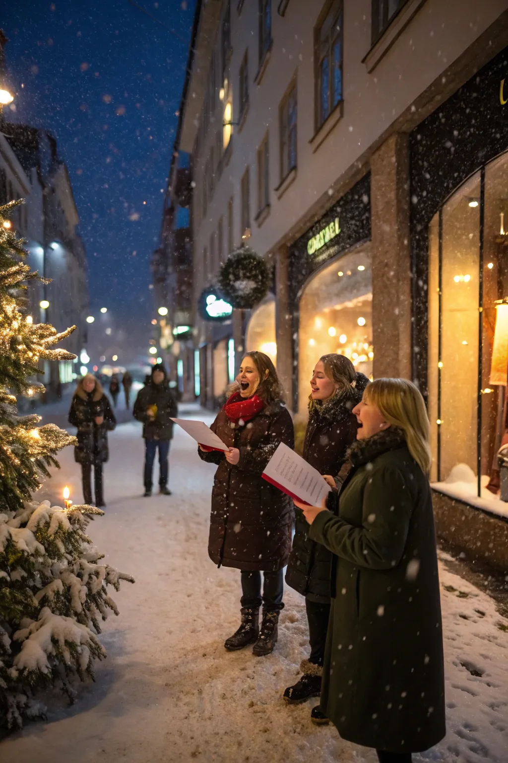 Joyful carolers spread holiday cheer throughout the community.
