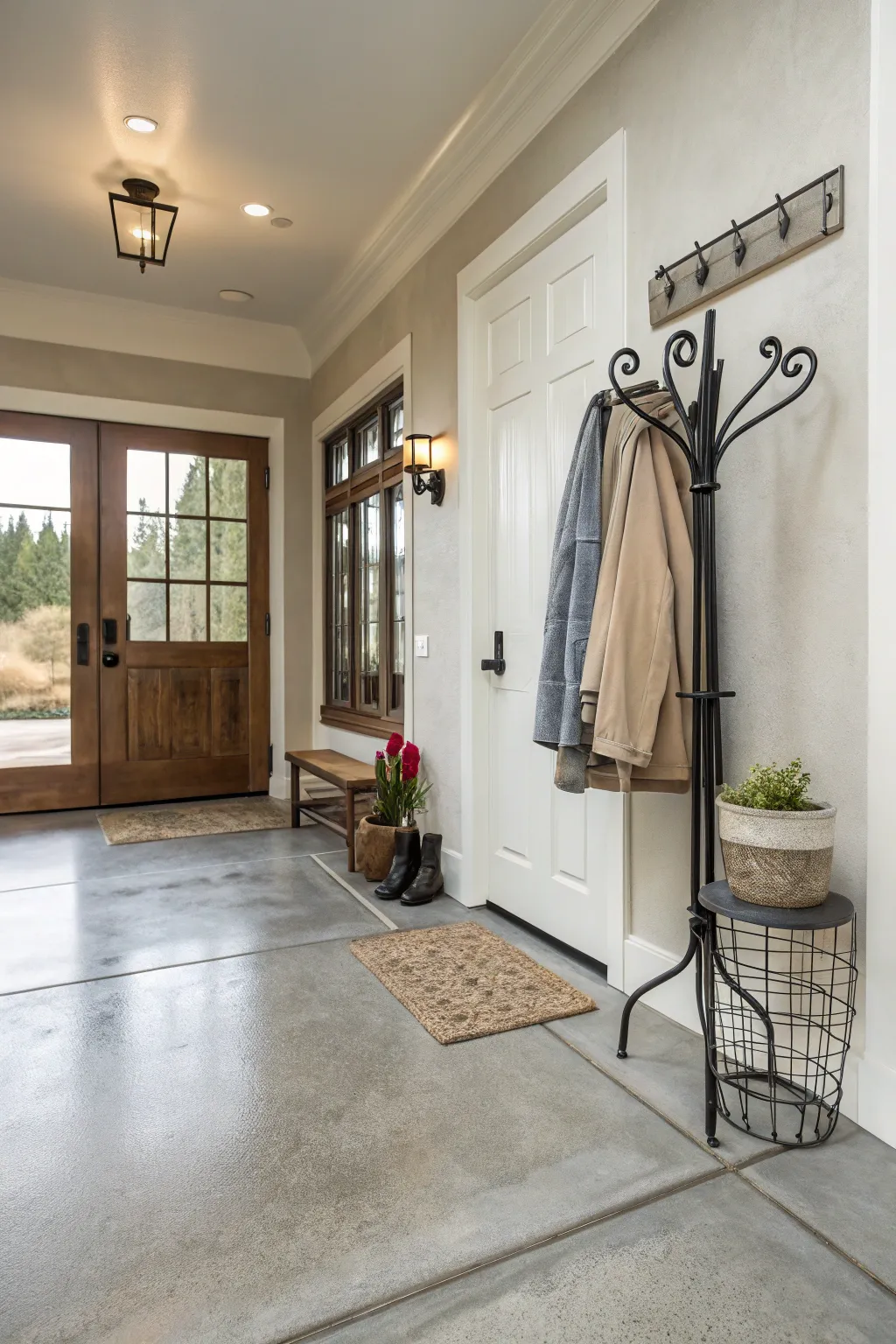 For bustling households, concrete floors constitute a pragmatic selection for high-activity zones. Its resistance to deterioration renders it a favorite of mine for entryways and mudrooms.