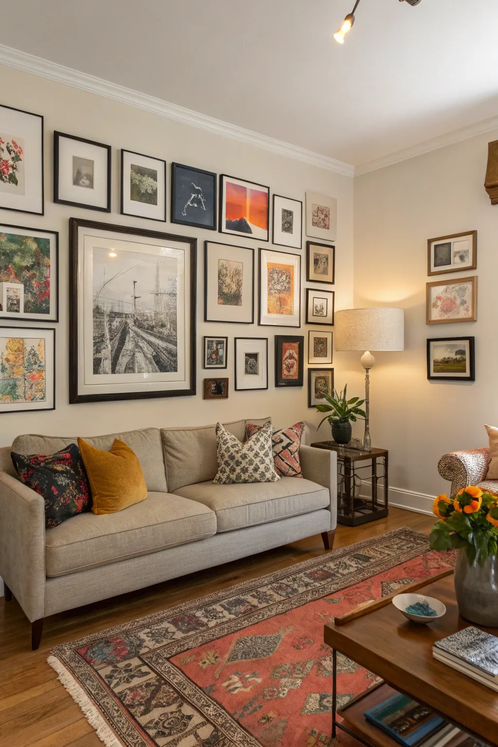 Artwork and wall decorations personalize your living room.