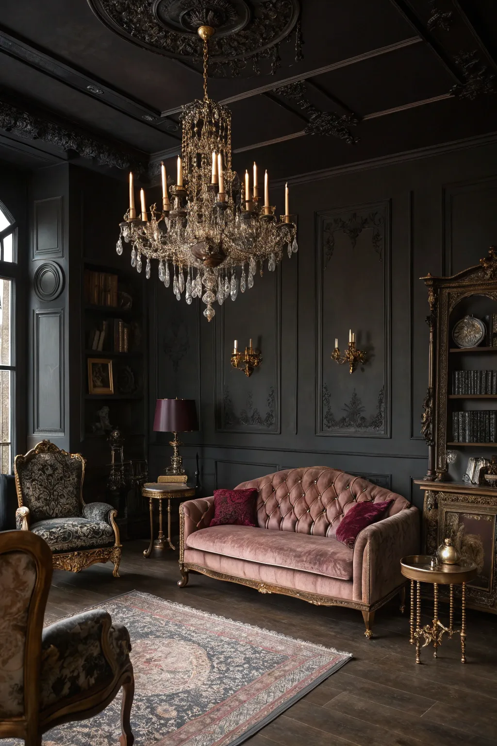 Marry deep-toned walls with classic furnishings and dramatic window treatments for a theatrical-inspired aesthetic. I’ve come to realize that this style introduces a profound sense of history, proving both enchanting and enduring.