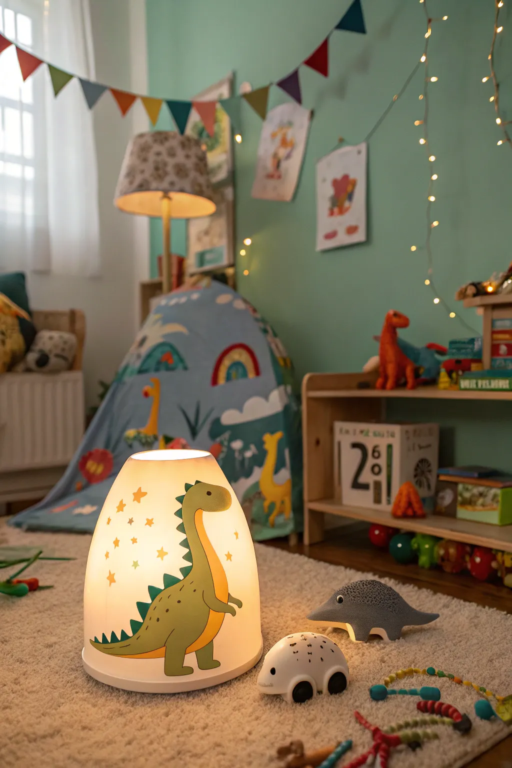 - Twinkle Dino Fairy Lights: Light up the teepee with dinosaur-shaped fairy lights, adding a dreamy, magical glow to playtime.