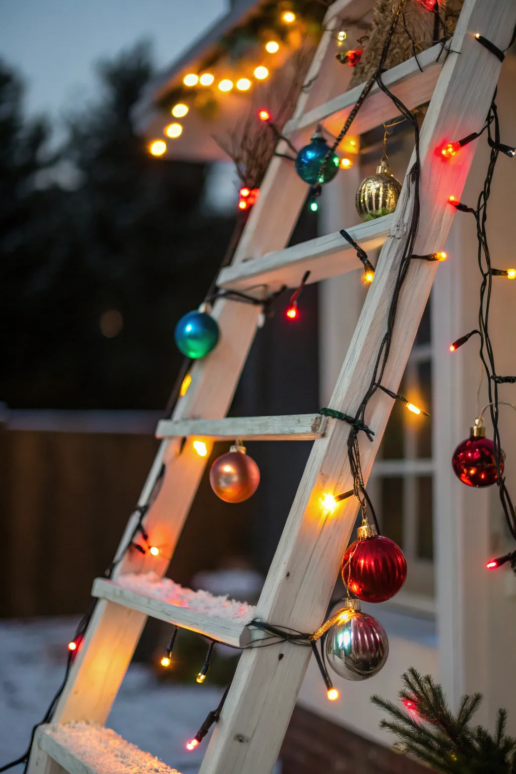 - Twinkling Illumination: Illuminate your ladder with vibrant string lights to create a warm, festive atmosphere.