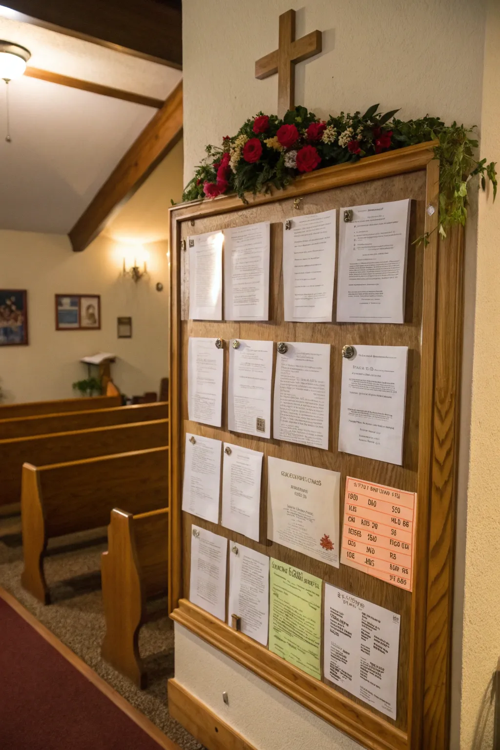 - Wooded Framed Posting Board: Keep your community update with a classic cork posting board. Perfect for churches.