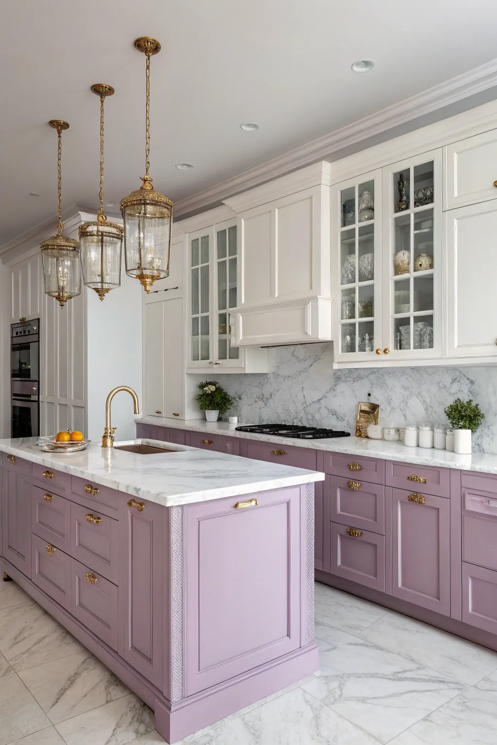 - Grace Beam Lights: Add sophistication with Grace Beam Lights to complete your lilac and white kitchen ambiance.
