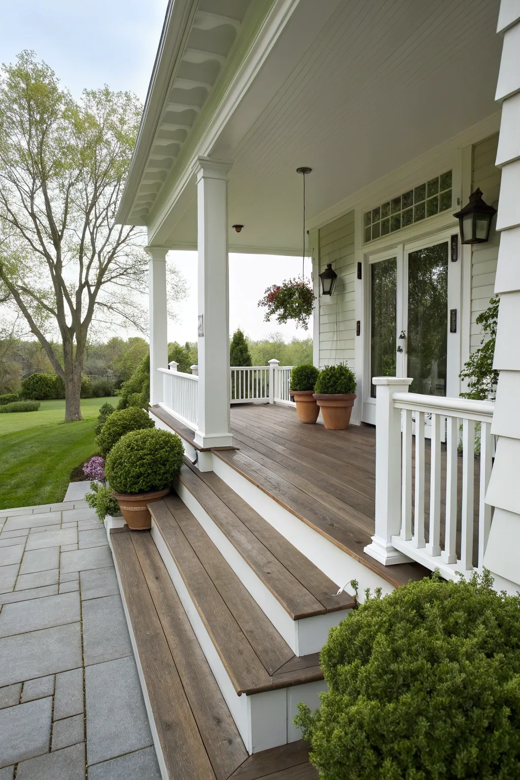 Blending classic and current aspects in your porch steps can build a timeless allure. In my experience, this combination functions well to respect both history and modern tastes.