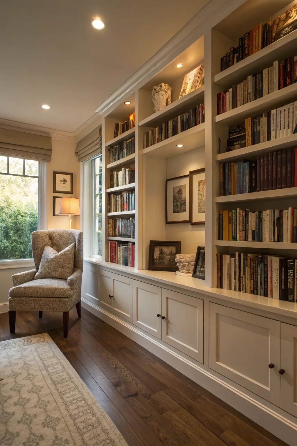 If you’re fortunate enough to have a sizable window, think about installing a window retreat for a radiant reading corner. My window seat also serves as storage, keeping my library organized and appealing.