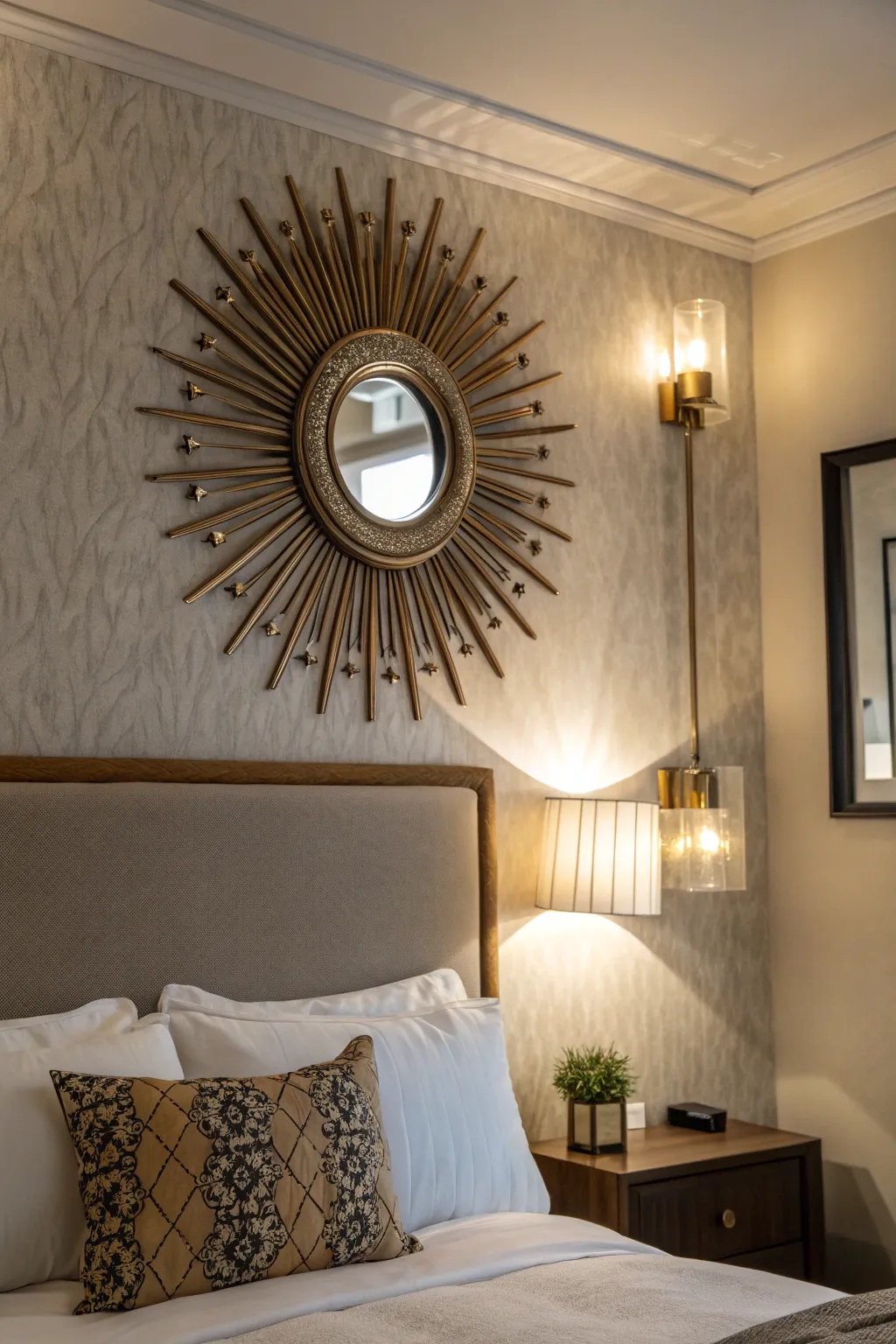 Opt for reflectors in unique forms to create an artistic proclamation. I discovered a starburst reflector for my bedroom, and it serves as an enchanting piece of décor.