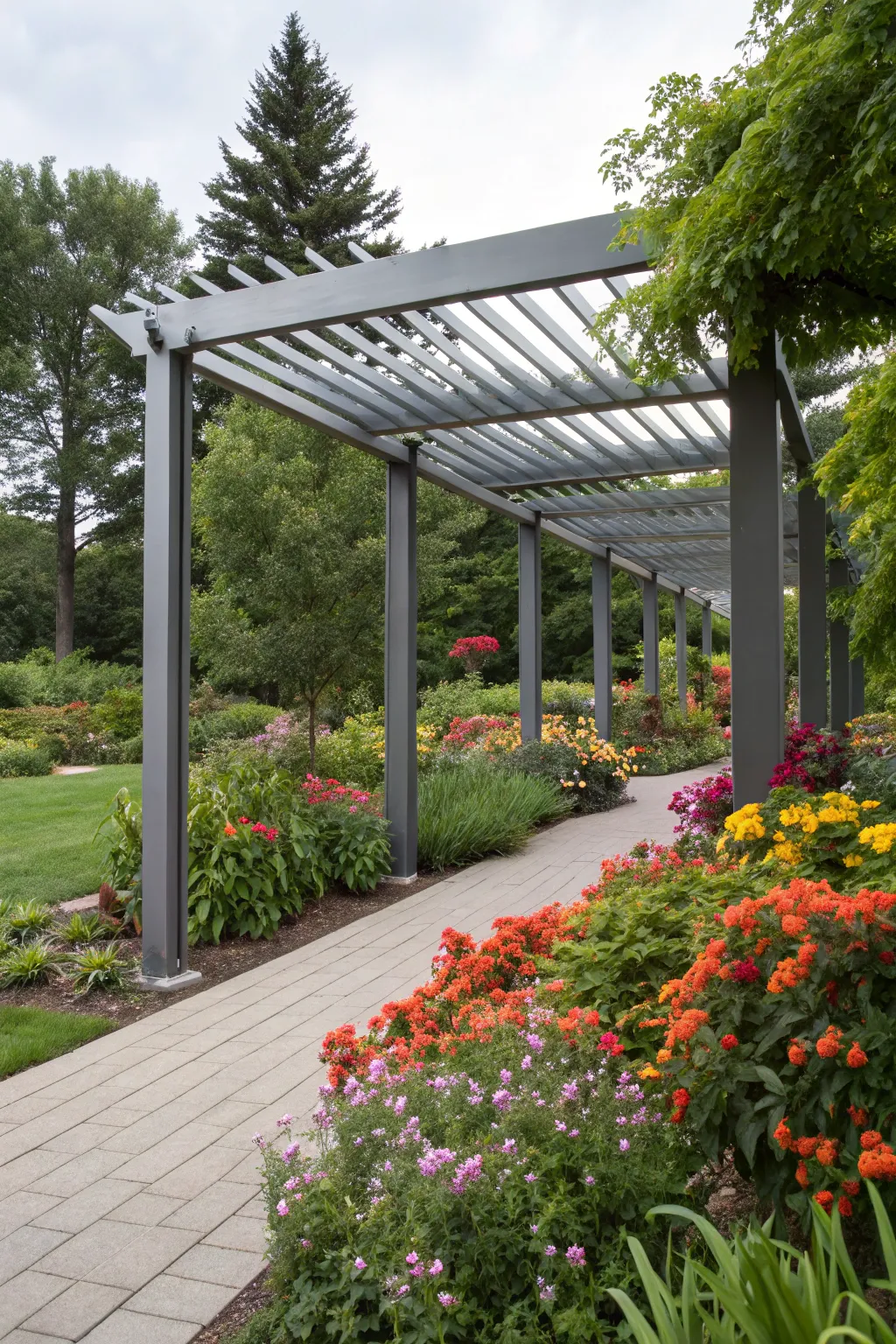 Picture a refined metal pergola that embodies modern elegance. It always amazes me how these structures effortlessly merge with nature while adding a contemporary twist.